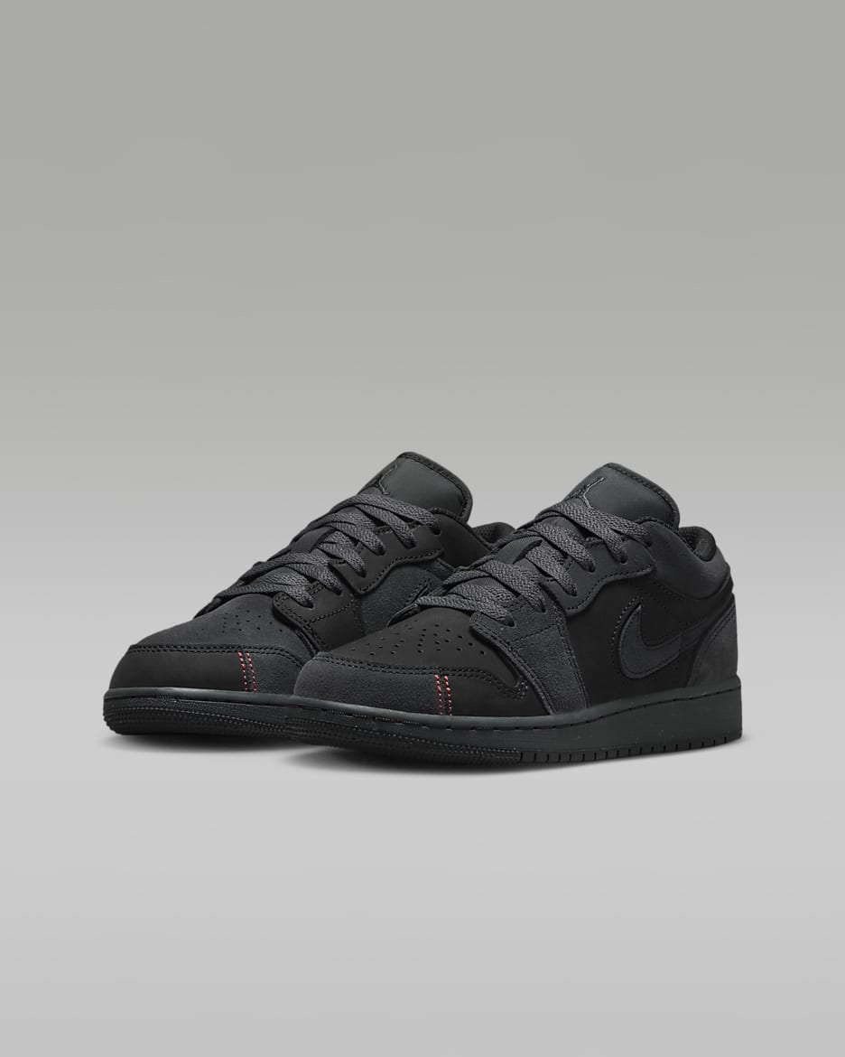 Black on black! This AJ1 combines leather, suede and textiles in the upper for a cool one-color look. Comfy cushioning is perfect for exploring—see what kind of fun you can find.