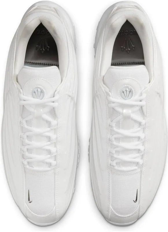 NOCTA HOT STEP 2, A NEW AND UPDATED VERSION OF THE SIGNATURE HOT STEP. SYNTHETIC-LEATHER UPPER WITH A REFLECTIVE DESIGN FINISH. UNIQUE EYESTAY. UTILISING TEXTILE WEBBING FOR LACE LOCKDOWN. NOCTA SIGNATURE SOCKLINER. VISIBLE AIR UNIT IN THE HEEL. SOLID RUBBER OUTSOLE WITH CUSTOM NOCTA NORTH STARS. G-TEK OUTSOLE TECHNOLOGY.